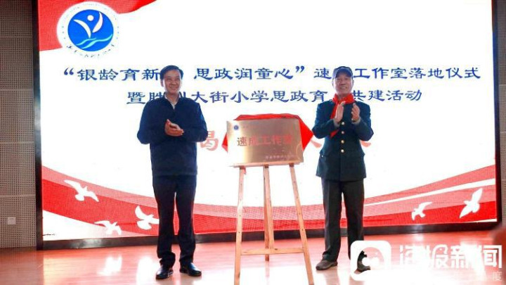 活动中,济南市胜利大街小学学生发展部副部长陈晨发言,全国离退休干部先进个人、济南市道德模范王速成老人和与会领导共同为“速成工作室”揭牌。济南市市中区杆石桥街道党工委委员、纪检监察工委书记昝中党为王速成老人颁发校外思政辅导员聘书。